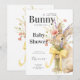 This bunny themed baby shower invitation blends rustic charm with modern elegance, making it ideal for spring baby showers, garden celebrations, woodland themes, or bunny-inspired parties. The soft floral details and warm neutral palette pair beautifully with the playful yellow accents, creating a sweet and inviting announcement for your special event.