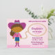 Este convite de aniversário cor-de-rosa da vaqueira 5x7 tem uma vaqueira do afro-americano guardarar um laço. Você pode facilmente personalizar sua informação do partido à direita. Gráficos pelo estúdio de Stockberry em Mygrafico