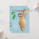 Desenho adorável de uma preguiça pequena distorcido do bebê apenas que pendura para fora. Aperfeiçoe para o aniversário da criança. Fácil personalizar textos. A cor do fundo é igualmente customizável.