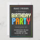 Convite de aniversário. Fundo com divertimento, perfuradores vívidos das cinzas de carvão vegetal de azul, de alaranjado, de verde e o vermelho na palavra "partido". Beira multicolorido. Simples contudo elegante. Divertimento contudo elegante. Este convite de aniversário trabalha igualmente bem para adultos e caçoa celebrações.