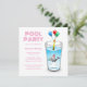 A festa de aniversário da baleia no copo bebendo começou com balões e chapéus de festa.