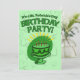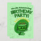 Convites de festas bonitos para o aniversário do dia do St Patrick! Na parte dianteira, o texto lê-a é FESTA DE ANIVERSÁRIO do dia de um St Patrick! Ilustrado com um bolo verde com número customizável das velas (0-5). No reverso, a abundância do espaço e o texto colocam para que você adicione sua informação do partido. Tudo no verde naturalmente!