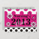 Convites à Festa de formatura de Enfermeira em 2013, cor-de-rosa escuro e cinzas pretas com bolinhas retro-flores e design de estetoscópio. Convites personalizáveis.