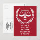 Convites para a festa do advogado criativo para comemorações da graduação da Faculdade de Direito, anúncio do escritório de advocacia, anúncio de graduação ou festa de aniversário com escalas engraçadas de justiça em fundo vermelho.