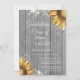 Estes anúncio/convite de festas da graduação do na moda 5x7 tem um tema rústico do país com um fundo de madeira e alguns girassóis amarelos nos cantos no direito superior e no inferior esquerdo. Você pode facilmente personalizar a informação no meio. Isto é perfeito para um formando do segundo grau ou da faculdade.