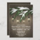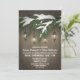 Convites à Festa de noivado de Lanterna Evergreen - design apresenta um fundo de madeira rústico com lanternas balançando de uma neve coberta de cada galho verde-árvore. Consulte produtos correspondentes neste design encontrado na coleção nesta página.