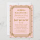 Esses convites para festas de solteira contêm uma paleta cor rosa e dourada, um quadro geométrico, padrões geométricos e outros detalhes estilísticos, todos inspirados no Art Deco e nos vinte e poucos anos ruidosos. Você pode personalizar os campos de texto de exemplo de acordo com o seu gosto.