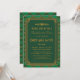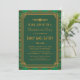 Esses convites para festas de solteira têm uma paleta verde e dourada, uma estrutura geométrica, padrões geométricos e outros detalhes estilísticos, todos inspirados no Art Deco e nos vinte e poucos anos ruidosos. Você pode personalizar os campos de texto de exemplo de acordo com o seu gosto.