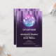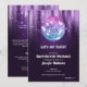 Uma bola de discoteca destaca estes convites de Fim de Semana de Festa de solteira. Seus detalhes em letras brancas chic e os detalhes do fim de semana no verso.