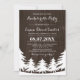 Se você está tendo seu evento fora, a seguir considere abraçar este tema perfeito da floresta! Estes convites bonitos da festa de solteira caracterizam uma floresta e uma paisagem no branco sobre um fundo de madeira da grão do falso no marrom escuro. Você pode personalizar os campos do texto da amostra ao seu gosto. Outro que combina convida está igualmente disponível.
