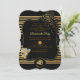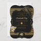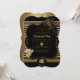 Um cartão de convite para uma festa Dourada-negra, ao estilo art-deco - A textura lúdica de seda dourada passada por dois anéis de casamento e a menina glamourosa no canto com uma corsagem embrulhada sobre a cutelaria dão a esta carta uma boa olhada