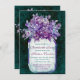 Convites roxos da festa de solteira do frasco de pedreiro da cerceta do país rústico com um buquê afligido do roxo e do aqua das flores em um frasco de pedreiro. Apenas adicione seu próprio fraseio da festa de solteira. O verso igualmente tem o mesmo frasco de pedreiro e o design floral roxo, com as palavras "obtem pronto para o último Fling antes do anel".