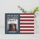 Branco vermelho e azul 4o do convite da foto de julho. Design do divertimento com texto corajoso grande. Azul com quadro branco da estrela mais listras vermelhas e brancas. Adicione seus próprios foto e texto. Todo o texto, pias batismais, formas e cores podem ser personalizados por você que usa as ferramentas fornecidas dentro dos menus da personalização e da personalização de Zazzle. Aperfeiçoe para o quarto de celebrações do Dia da Independência de julho e de partidos cão-amigáveis. Visite nossa loja, vida na viagem nostálgica, para produtos de harmonização e mais.