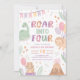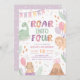 A Garota do Dinossauro, 4.º Aniversário, Convide. Cute Baby Dino Quarto Convite. Pastel Pink Roar Imprimível Em Quatro Meninas Festas Digitais Modernas. D3