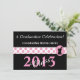 Convites para a graduação de farmacêutico elegante, banda de polca preta e rosada, de cor preta e rosada, com almofariz e argamassa. "Uma Celebração de Graduação". Parte frontal e traseira personalizáveis. *Gráficos e design por Gail Gabel