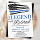 A Lenda Se Aposentou! Convites de aposentadoria da polícia de linha azul fina. Celebre anos de serviço dedicado e convide amigos e familiares para a sua festa de aposentadoria na polícia com este Convite para aposentadoria da Polícia de Sinalizador Azul Thin. DESIGN americano na Polícia de Sinalizador, cores modernas, preto branco e design azul. Veja a nossa coleção de presentes de aposentadoria de agentes policiais, favoritos para festas de aposentadoria da polícia e suprimentos. COPYRIGHT © 2021 Judy Burrows, Black Dog Art - Todos Os Direitos Reservados. A Polícia Reformada Legenda Personalizada Rejeitou Convite