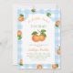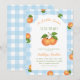 Celebrate the sweetest news with our Little Cutie Is on the Way baby shower invitation! This charming design features a playful blue gingham background paired with bright oranges and cheerful citrus accents for a fresh, sunny look that’s perfect for welcoming a new baby. The adorable little cutie theme adds a fun, modern twist that guests will instantly love, making your shower feel warm, joyful, and unforgettable from the moment they open the invite. Perfect for spring and summer celebrations, this invitation blends classic patterns with vibrant fruit illustrations to create a look that’s both timeless and trendy. Whether you’re planning a cozy brunch, garden party, or citrus-inspired shower, this design sets the tone for a celebration full of sweetness and smiles. Complete your party style by shopping the rest of the Little Cutie collection! From matching decorations to coordinating games and signage, you’ll find everything you need to create a beautifully cohesive baby shower theme your guests will adore.