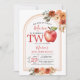Apple Second Birthday Girl Invitation, A maçã do nosso olho está virando dois, Apple Gingham segundo aniversário Fall