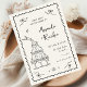 Simplifique o seu planejamento de casamento com esta diversão certeira francesa em um único convite para casamento! Apresentando detalhes divertidos desenhados à mão, uma estética visualmente viscosa e quadros ondulados, este design completo inclui espaço para o seu código QR e site de casamento, fazer fácil para os convidados para RSVP e acesso a detalhes importantes. Perfeito para casamentos de vassoura, retrô ou de inspiração francesa. Personalizável com texto e cores editáveis, disponível como cartão impresso ou download digital instantâneo.