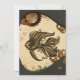 A maravilha mecânica do peixe-galo-do-oceano. O estilo steampunk apresenta detalhes complexos de preto e ouro. O peixe está rodeado de engrenagens e bolhas, em contraste com um fundo texturizado de pergaminho envelhecido. Os cantos das imagens são enquadrados com material e esferas escuras, metálicas, perfuradas. A estética geral é uma mistura de elementos mecânicos e orgânicos, criando um cenário de fantasia.