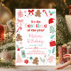 Celebre o dia especial da sua menina com este festivo Convite de Natal de Aniversário! Apresentando a frase brincalhona "É a melhor época do ano" em letras ousadas de feriado, esta design é perfeita para um primeiro aniversário ou qualquer celebração em dezembro. Cercado por biscoitos de pão de gengibre, canas doces, colly, arcos, presentes, flocos de neve e árvores de Natal, este convite captura a magia e a alegria da época de férias.