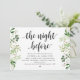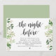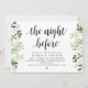 Convite temático de cartão de folhagem de eucalipto rústico moderno, script preto (com título do cartão: a noite anterior). É perfeito para a celebração do jantar de ensaio do seu casamento, antes do melhor dia. Adicione seus detalhes na fonte / letra preta correspondente.
