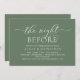 Calligraphy Romântica Moderna, tema de verde-sage com folhagens, cartão de convite de jantar de ensaios de casamento (com título do cartão: a noite anterior). É perfeito para a celebração do jantar de ensaios de casamento, antes do seu melhor dia. Adicione os detalhes da celebração do brunch ou jantar de ensaios de casamento. #TeeshaDerrick