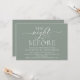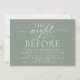 Caligrafia Romântica Moderna, Letra Branca, Fundo Verde Musgo, Convite para Jantar de Rehearsal de Casamento (com título do cartão: a noite anterior). É perfeito para a celebração do jantar de rehearsal do seu casamento, antes do seu melhor dia. Adicione seus detalhes em fonte / letra preta correspondente.