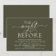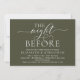 Chamada de Caligrafia Romântica Moderna, Letra Branca, Fundo Verde Oliva, convite de jantar de ensaio de casamento (com título do cartão: a noite anterior). É perfeito para a celebração do jantar de ensaio de casamento, antes do seu melhor dia. Adicione seus detalhes em fonte / letra preta correspondente.