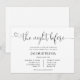 Convite de Janto de ensaio de casamento com as palavras "a noite anterior" em escrita de caligrafia bonitinha de coração.