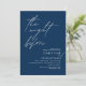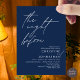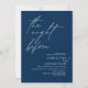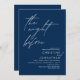 Anuncie sua alegria, depois de um momento, em estilo com o nosso moderno marinho de convite para comemorações do ensaio de casamento azul de design (The Night Before). É ideal para casais que decidiram celebrar a noite antes do seu melhor dia. Com seu design sofisticado, mas lúdico, este convite certamente define o tom de um evento inesquecível. A carta de convite apresenta o moderno design de roteiro romântico, adicionando um toque de elegância do eterno à sua celebração. Projetado por TeeshaDerrick
