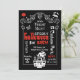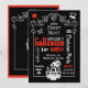 Design de tipografia deliciosamente assustadora no estilo de quadro branco e laranja com fundo preto. O convite da festa de Halloween tem uma casa assombrada, abóbora e morcegos como sotaques divertidos. Personalize com as informações de sua parte. O cartão de volta tem um tema correspondente.