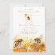 Um design doce para uma noiva tão adorável quanto o mel! Este chá de panela com o tema das abas florais apresenta pentes de alevins com aquarelas, abelhas buzinadas e flores amarelas selvagens — perfeito para uma festa de jardim, um brunch no quintal ou uma celebração rústica de verão. A morna paleta de ouro e a delicada escrita fazem com que este convite sinta-se simultaneamente caprichoso e elegante.