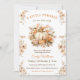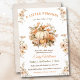 Um pouco de abóbora está a caminho, um pastel neutro e um elegante convite para chás de fraldas de outono com duas abóboras e flores em laranja mole, creme e verde com vibrações de outono sobre fundo branco. A canvas e as flores no fundo. Personalize facilmente todo o texto. - Kate Eden Art