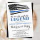 O Homem O Mito A Lenda! Convites de aposentadoria da polícia de linha azul fina. Celebre anos de serviço dedicado e convide amigos e familiares para a sua festa de aposentadoria na polícia com este Convite para aposentadoria da Polícia de Sinalizador Azul Thin. DESIGN americano na Polícia de Sinalizador, cores modernas, preto branco e design azul. Veja nossa coleção para combinar presentes de aposentadoria da polícia, favoritos para festas de aposentadoria da polícia e suprimentos. COPYRIGHT © 2021 Judy Burrows, Black Dog Art - Todos Os Direitos Reservados. A Polícia de Legenda Fino Convite para Reforma de Linha Azul