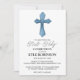 Celebre o dia especial do seu filho com estes na moda e sofisticados convites de primeira comunhão. Apresentando um belo fundo azul-d'água, um delicado design e um toque de folha de ouro, esses convites são perfeitos para uma celebração moderna e elegante. O design é personalizável para corresponder ao tema e à paleta de cores do evento.