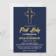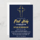 Celebre o dia especial do seu filho com estes na moda e sofisticados convites de primeira comunhão. Apresentando um belo fundo azul-d'água, um delicado design e um toque de folha de ouro, esses convites são perfeitos para uma celebração moderna e elegante. O design é personalizável para corresponder ao tema e à paleta de cores do evento.
