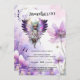 Uma bela princesa fada americana africana tem suas belas asas de fada rosa, roxo e rosa iridescentes e lacrimejantes abertas e pairando sobre modelos de texto editáveis. Ela está vestindo a saia prateada mais bonita e superior e é enquadrada pelas flores e borboletas mais bonitas, cor-de-rosa e roxas do jardim. O verso tem o mesmo gráfico com um modelo de texto extra para texto ou informações adicionais que você pode querer transmitir aos seus convidados (instruções, acomodações, etc.). Se não for necessário, basta suprimir a redação para a deixar vazio. Este gráfico 3D aquarela é ideal para um conto de fadas; princesa de fadas; jardim encantado ou aniversário mágico do tema para meninas.