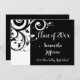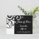 Anúncio de graduação em espiral preto e branco clássico e elegante, convite para festas de formatura ou convite para formatura. Perfeito para a garota com um estilo refinado. Folheto de design de rolagem com fundo preto e letra de script de rico branco. Personalizar online! Todas as imagens e designs © www.CustomInvitesOnline.com