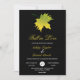 Este elegante convite de casamento outono é perfeito para um casamento moderno no outono. A simples design apresenta folhas verdes de outono com elegante tipografia branca e amarela sobre fundo preto