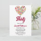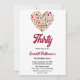 Este elegante convite de aniversário de outono é perfeito para um aniversário de outono moderno. O simples design apresenta um coração colorido de folhas de outono com elegante tipografia em preto e vermelho sobre fundo branco.