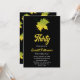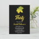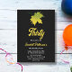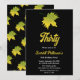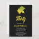 Este elegante convite de aniversário de outono é perfeito para um aniversário de outono moderno. A simples design apresenta folhas verdes de outono com elegante tipografia branca e amarela sobre fundo preto.