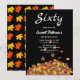 Este convite de aniversário de outono moderno apresenta folhas de outono simples com tipografia branca elegante, colocadas contra um fundo negro ousado.