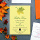 Este elegante convite de casamento outono é perfeito para um casamento moderno no outono. A simples design apresenta folhas verdes de outono com elegante tipografia preta e verde sobre fundo amarelo-claro