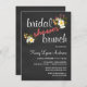 Chá de casamento floral do quadro --Convites nupciais da refeição matinal -- Regue a noiva com o elogio florido! Flores abstratas bonitos amarelas e do branco com rosa de chá e caligrafia elegante cor-de-rosa coral do acento e a moderna no quadro-negro das cinzas de ardósia. Apenas adicione o nome Noiva-à-Estar, da data, de tempo e de detalhes, e personalize a informação nupcial do registro. NOTA: Mostrado em cartões pequenos do convite do pequeno tamanho. O clique personaliza-o para mudar o tamanho, o estilo, as pias batismais, a cor e a disposição para criar seus próprios convites disponíveis do chá de casamento.