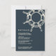 Projetado para corresponder aos nossos convites e acessórios do casamento "A Bússola Azul", este cartão de informações de convidado de náutica apresenta um estilo vintage desenhado à mão Ilustração de roda do navio em azul marinho. Use os campos modelo para personalizar com os detalhes de seu convidado, hotéis e detalhes do site. Perfeito para praia, verão ou casamentos náuticos. Este design faz parte de uma coleção, visite nossa loja para obter itens correspondentes. Para obter uma solicitação personalizada, entre em contato conosco em citronelladesign@gmail.com