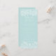 Belo serviço azul claro e branco com espirais florais brancos e escrolagem. O trabalho detalhado de rolagem floral e os toalhetes enquadram o texto. Todo o texto pode ser mudado de acordo com suas próprias necessidades. A cor e o posicionamento também podem ser alterados. Por favor, note que este é um azul leveTiffany. Se você quiser uma combinação personalizada de cores para se adequar ao seu casamento, clique em 'Contato' acima. Não se esqueça de verificar todos os itens correspondentes para coordenar totalmente seu casamento ou evento!