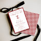 On the back, a bold deep red checkered pattern creates striking visual contrast and brings in vintage European charm, evoking country club elegance and classic cocktail lounge style. The patterned reverse adds depth and refinement, making this invitation feel thoughtfully designed from front to back.