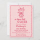 Celebrate in style with this chic and playful “A Tini Bit Older” Birthday Invitation Template, the perfect choice for milestone birthdays at any age — 21st, 30th, 40th, 50th, 60th and beyond. Designed with a trendy pink background, scalloped border, and minimalist red cocktail illustration featuring a martini glass with cherry garnish and bow detail, this invitation blends modern charm with feminine sophistication.