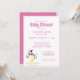 A Vaca Saltou Por Causa Do Convite Ao Chá de fraldas Da Viagem Da Lua. Gráfico bonito de uma vaca saltando sobre a lua com fundo rosa e sotaques. Mamãe vai ficar satisfeita com este convite para a rima da Madre Goose. Use nosso modelo fácil para personalizar com os detalhes de sua festa.